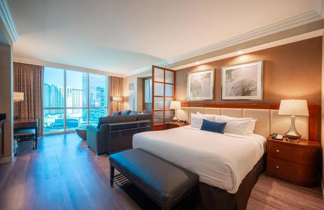 Voor het comfort van de gasten is een ingerichte kitchenette met een koffie/theezetapparaat, een koelkast en een kookplaat. Gordon Ramsay Burger met de Amerikaanse keuken ligt 1 km verwijderd van de 0-slaapkamer No Resort Fee Strip View Suite + Free Valet + Pool villa. De dichtstbijzijnde bushalte is Planet Hollywood, in de onmiddellijke nabijheid van de villa.