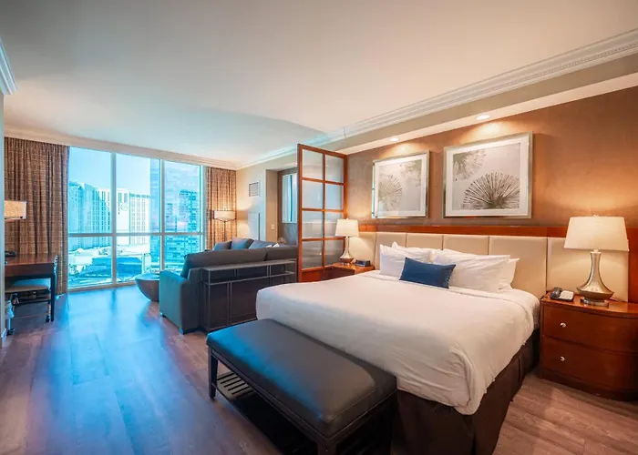 Het Madame Tussauds Las Vegas is binnen 25 minuten lopen gesitueerd. Het vakantiehuis ligt op een korte afstand van natuurlijke attracties zoals de Bellagio Conservatory & Botanical Gardens. No Resort Fee Strip View Suite + Free Valet + Pool villa bevindt zich op 450 m van Wet Republic.